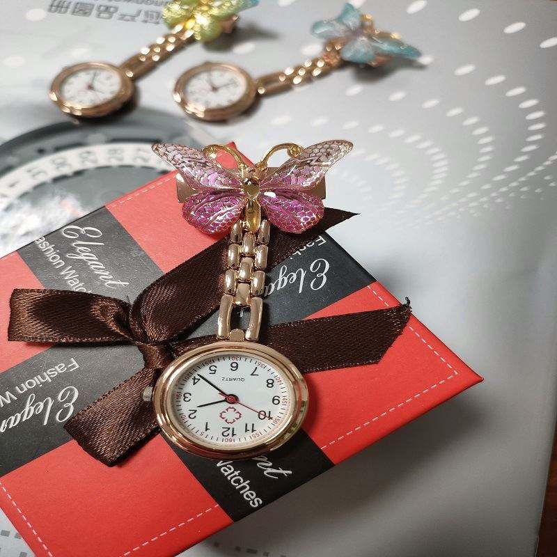Modern Style Butterfly Nurse Pocket Watch Fashion Quartz Hanging Clock Caregiver Graduation Gift