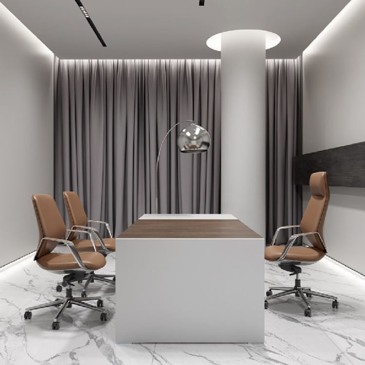 Modern Style Commercial Office Swivel Chair Fixed Headrest Genuine Leather Upholstered Adjustable Height Nylon Base 360 Degree