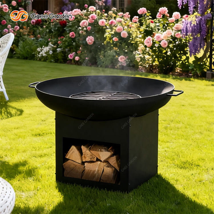 Modern Style Corten Steel Firewood Fire Pit BBQ Grill with Trolley CE Certified Portable for Home Picnic & Camping