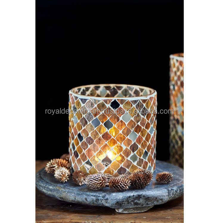 Modern Style Crystal Glass Votive Mosaic Candle Holder Customizable Bulk Royal Decor Mart Wood and Seed Material