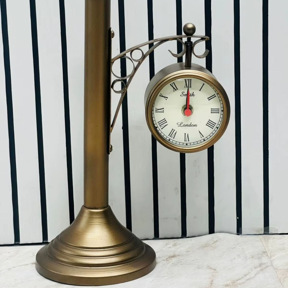 Modern Style Double-Sided Handmade Embossed Aluminium Portable Street Clock Railway Station Desk & Mantel Clock Decor