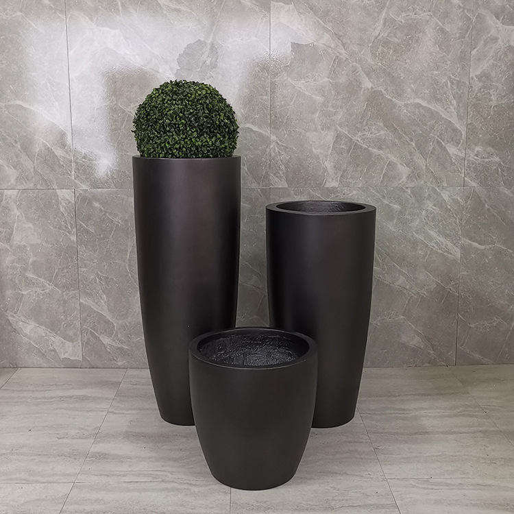 Modern Style Embossed Decorative Flower Vase Black Fiberglass Pots Bucket Shape Planter for Indoor & Outdoor use