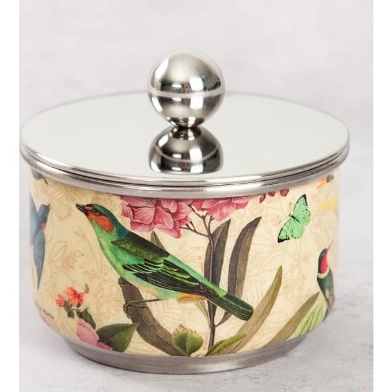 Modern Style Enamel Finishing Metal Chocolate Dates Serving Bowl With Lid Printed Design Dining Table Top Centerpieces Bowl