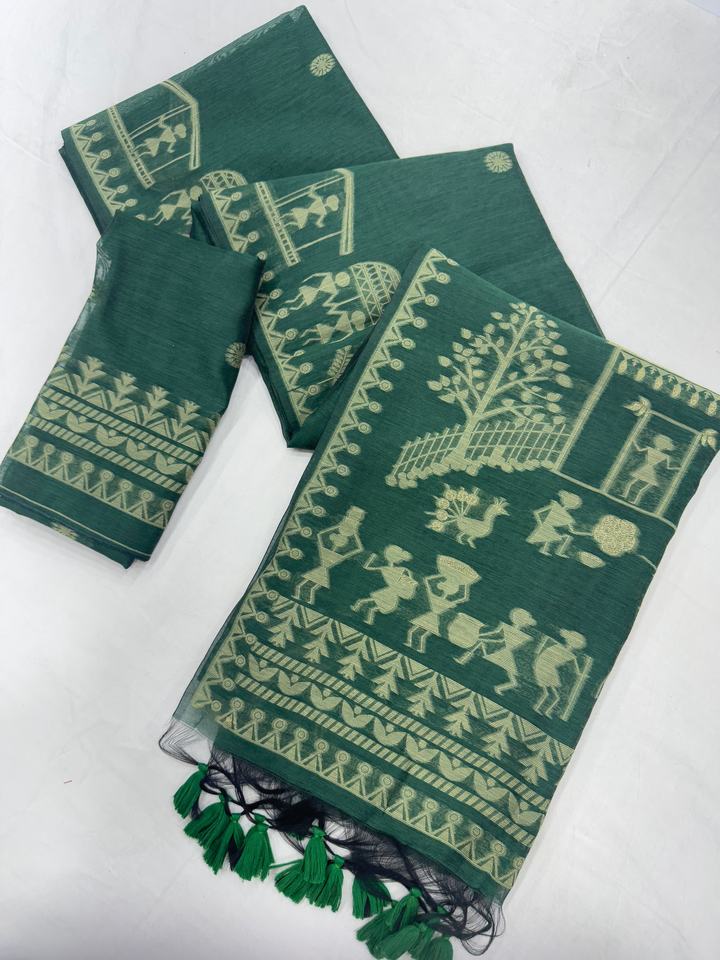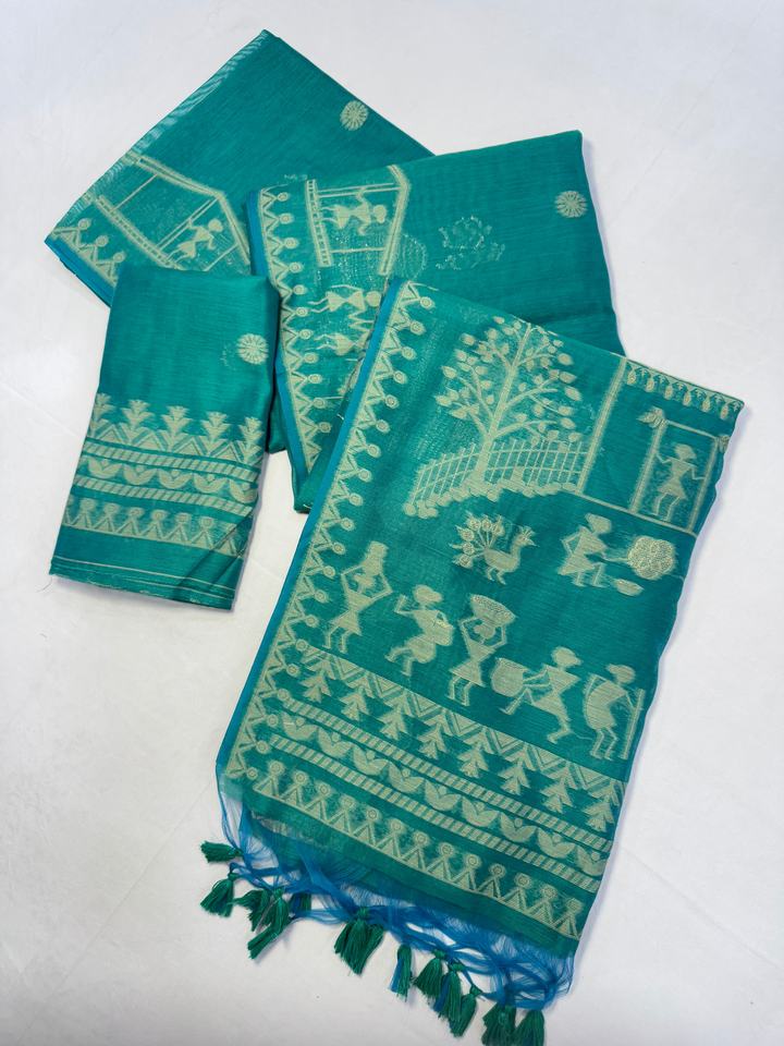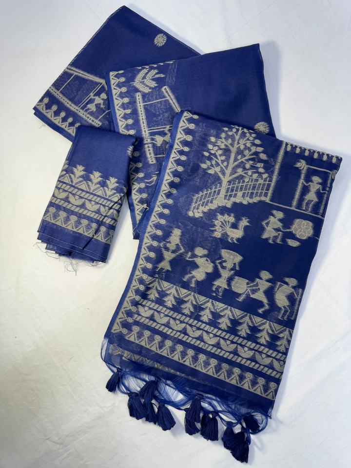 Premium Soft Muga Cotton Saree With Warli Weaving Saree