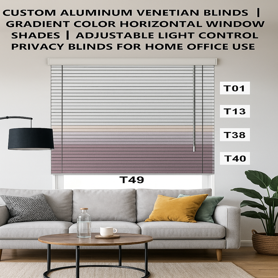 Modern Style Gradient Color Aluminum Venetian Blinds Built-In with Ladder Rope Customizable for Soft Light Control Home Office