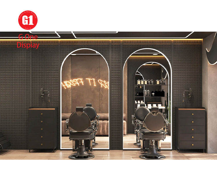 Modern Style Hair Salon Interior Design Custom Barbershop Station with Mirror LED Lighting for Barber Shop Fitment