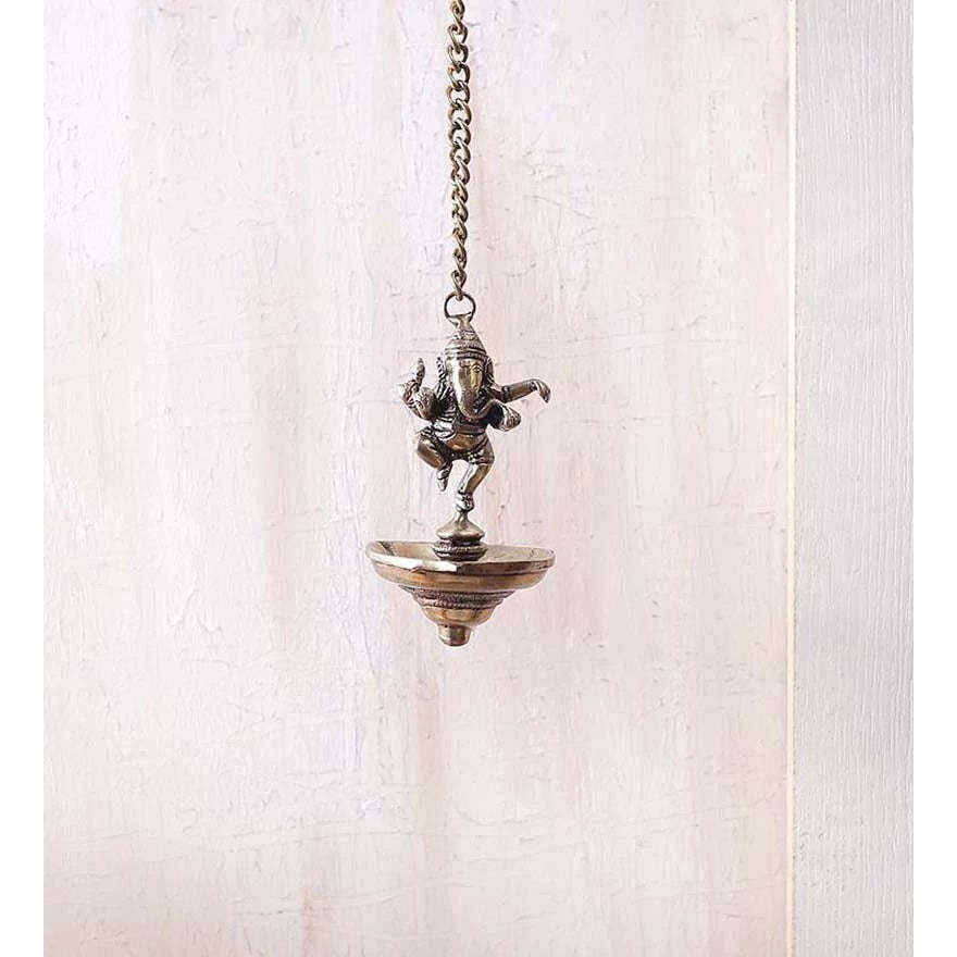 One Brass Dancing Ganesha Hanging 3 Oil Wick DiyaPackage Content
