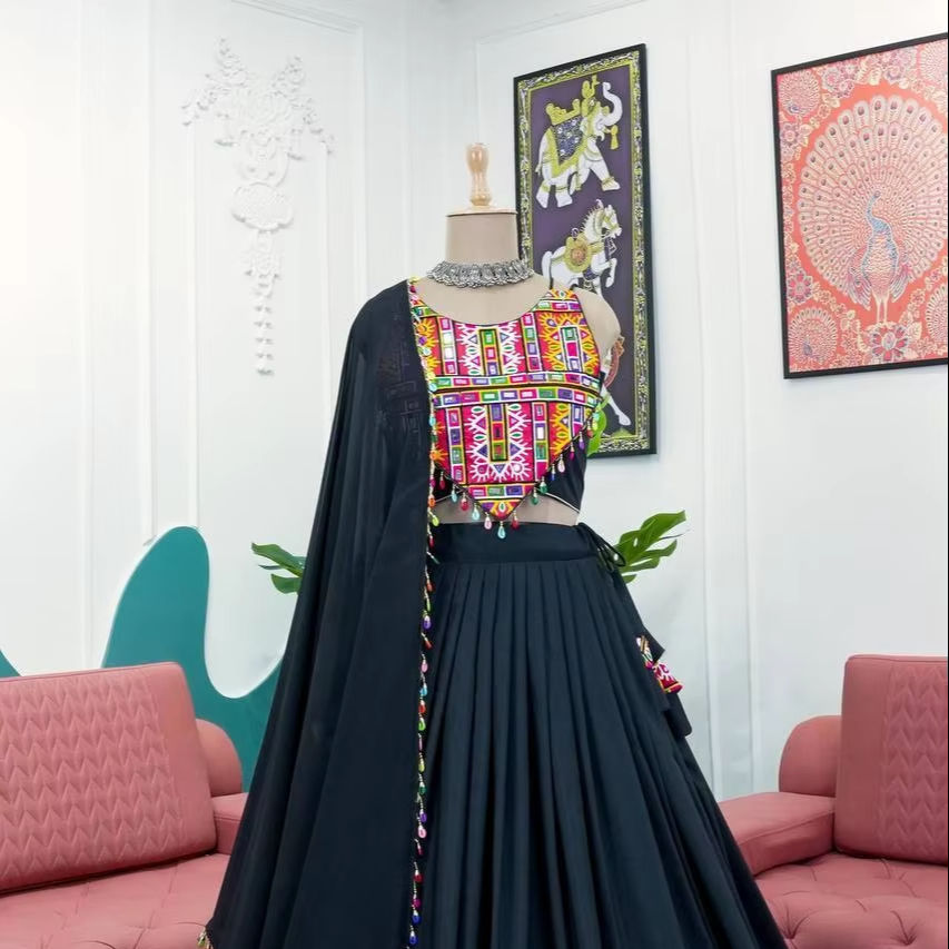 Product Name:Rayon Chine Stitch Real Mirror Work Lehenga And Choli Dupatta