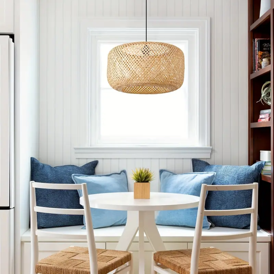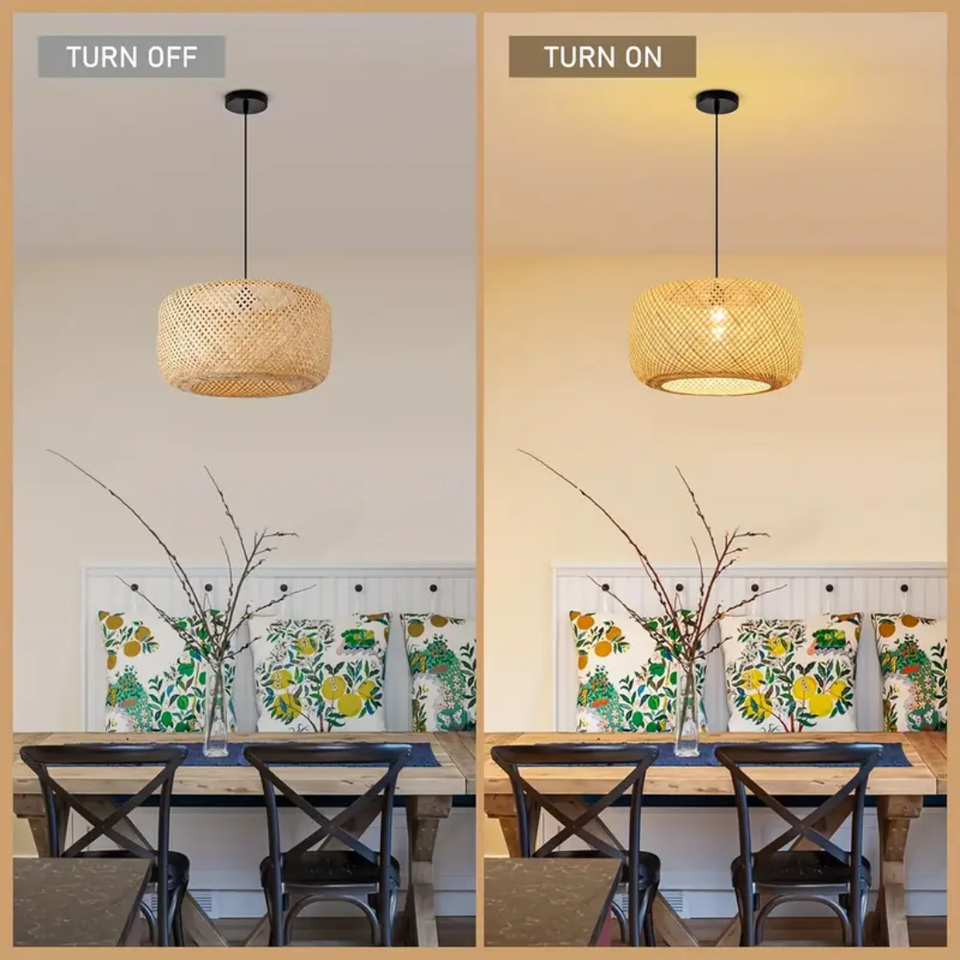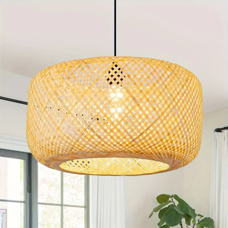 Modern Asian Farmhouse Pendant Ceiling Light Woven Wicker Bamboo Lamp Shade Indoor Hanging Chandelier for Living Room