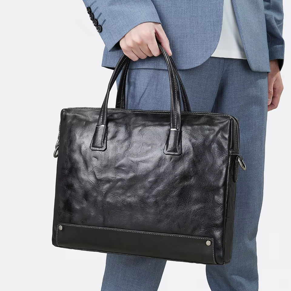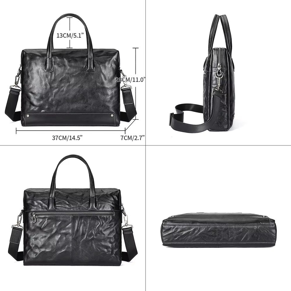 Modern 15 Inch Genuine Leather Laptop Briefcase for Men Portable Business Document Bag for Lawyers