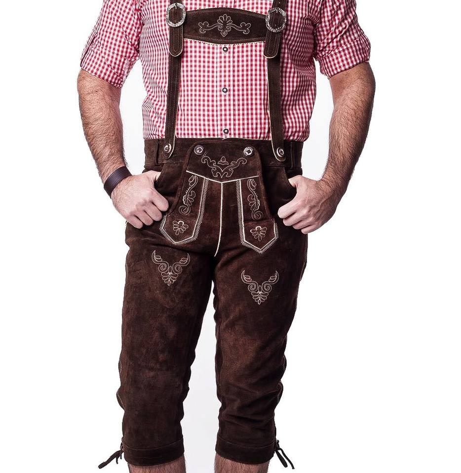 Modern Style Lightweight Bavarian Lederhosen Men Oktoberfest Embroidered Shorts Button Fly German Mid-Waist Long Bright Suede