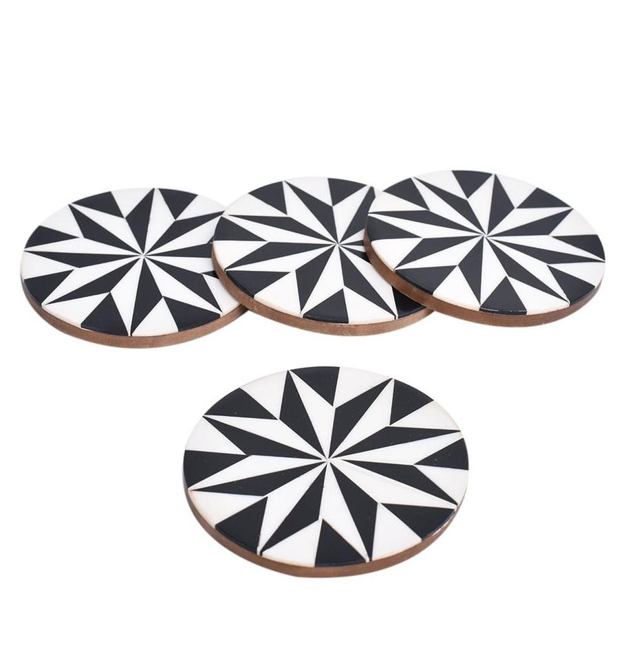 Modern Style MDF Boards Tea Coaster Set of 4 With Resin InlayMats & Pad Placemat Drinkware Kitchenware Coaster Set At Best Price
