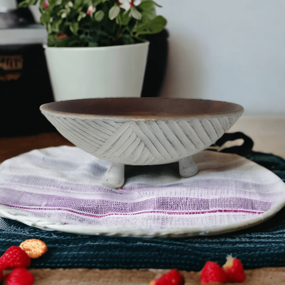 Modern Style Mango Wood Candle Holders Antique Hand-Carved Legs Natural White Bowl Type Lantern for Home Decor Christmas