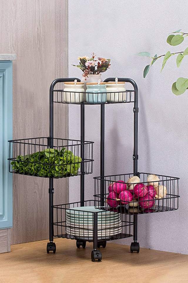Modern Style Metal Wire Kitchen Utility Trolley With Multi Layer Storage For Home And Apartment Organization