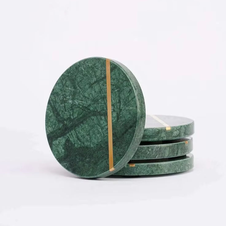 Modern Style Natural Marble Stone brass Coasters Set Polished Round Party Decorative Drink Coffee Cup Coasters for Drinks