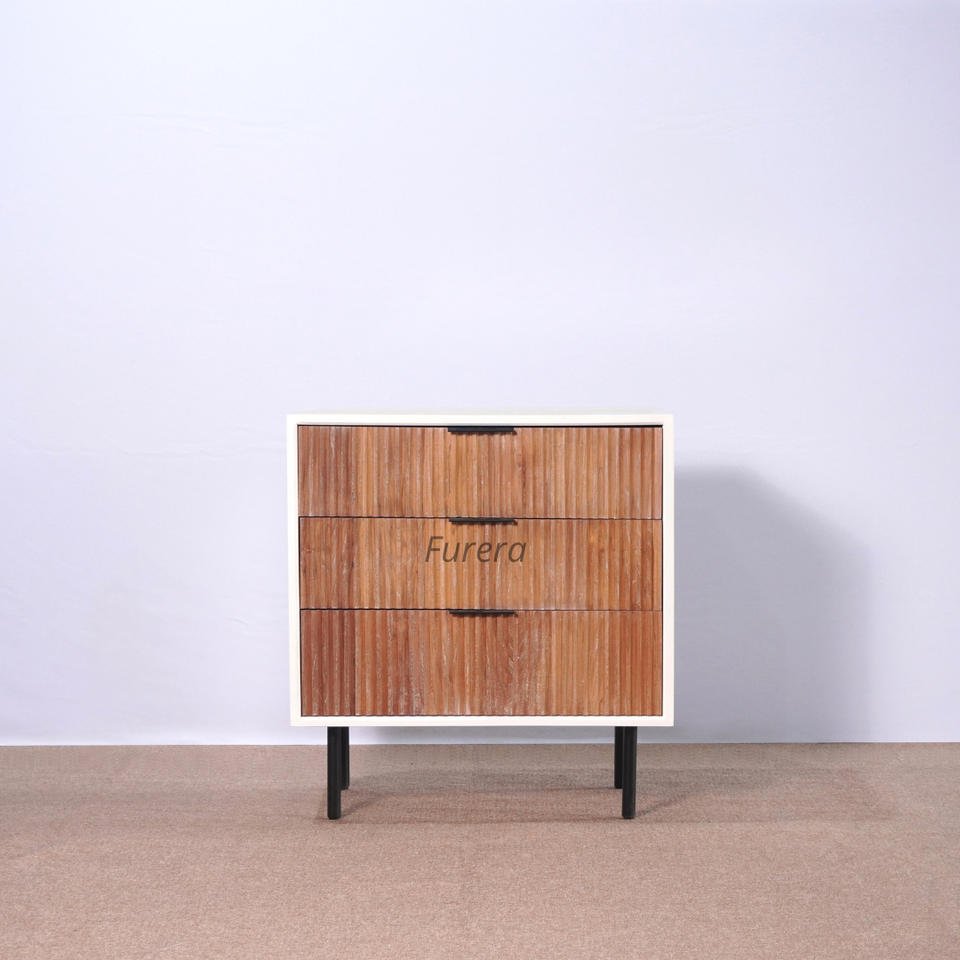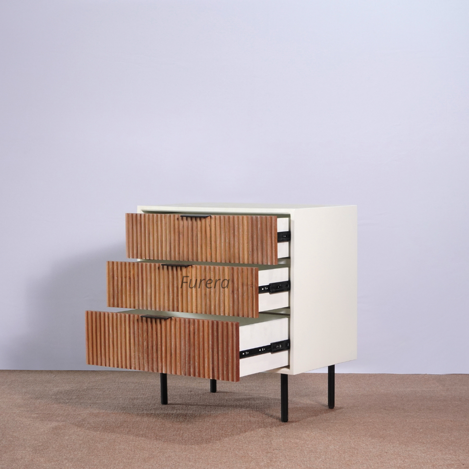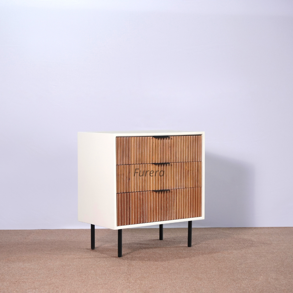 Modern Style Nightstand with 3 Drawers Natural Combination with White Painted Color for Apartment and Home Bedroom Furniture