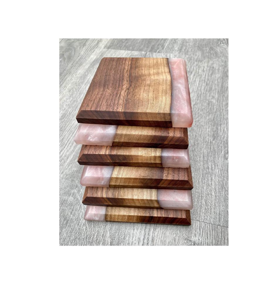 Modern Style Resin & Wood Stone Coasters Handmade White Color 100% Pure Wood for Home and Garden Tabletop Use