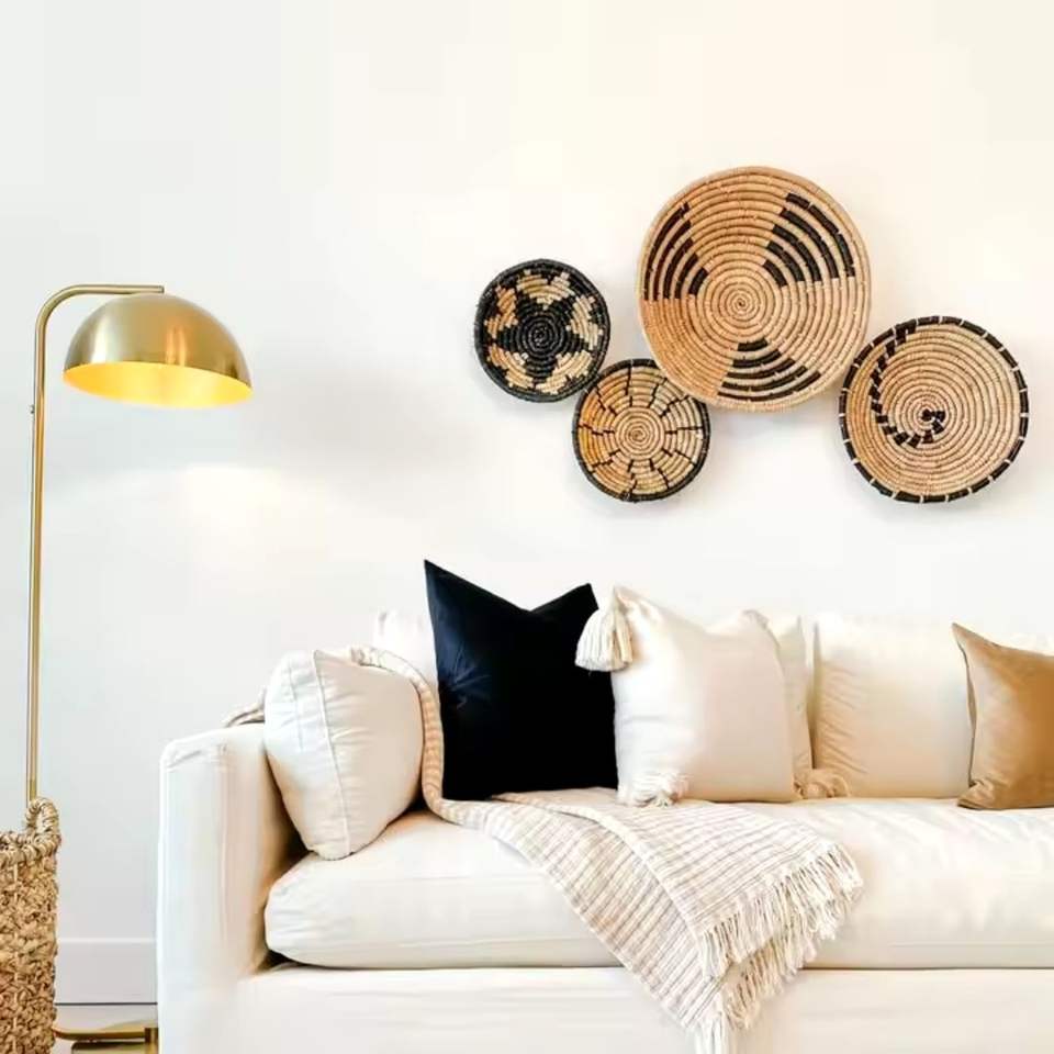 Modern Style Seagrass Wall Hanging Place Mat Baskets Round Shape Woven Set of 4 Pcs From Vietnam Home Accessories Supplier