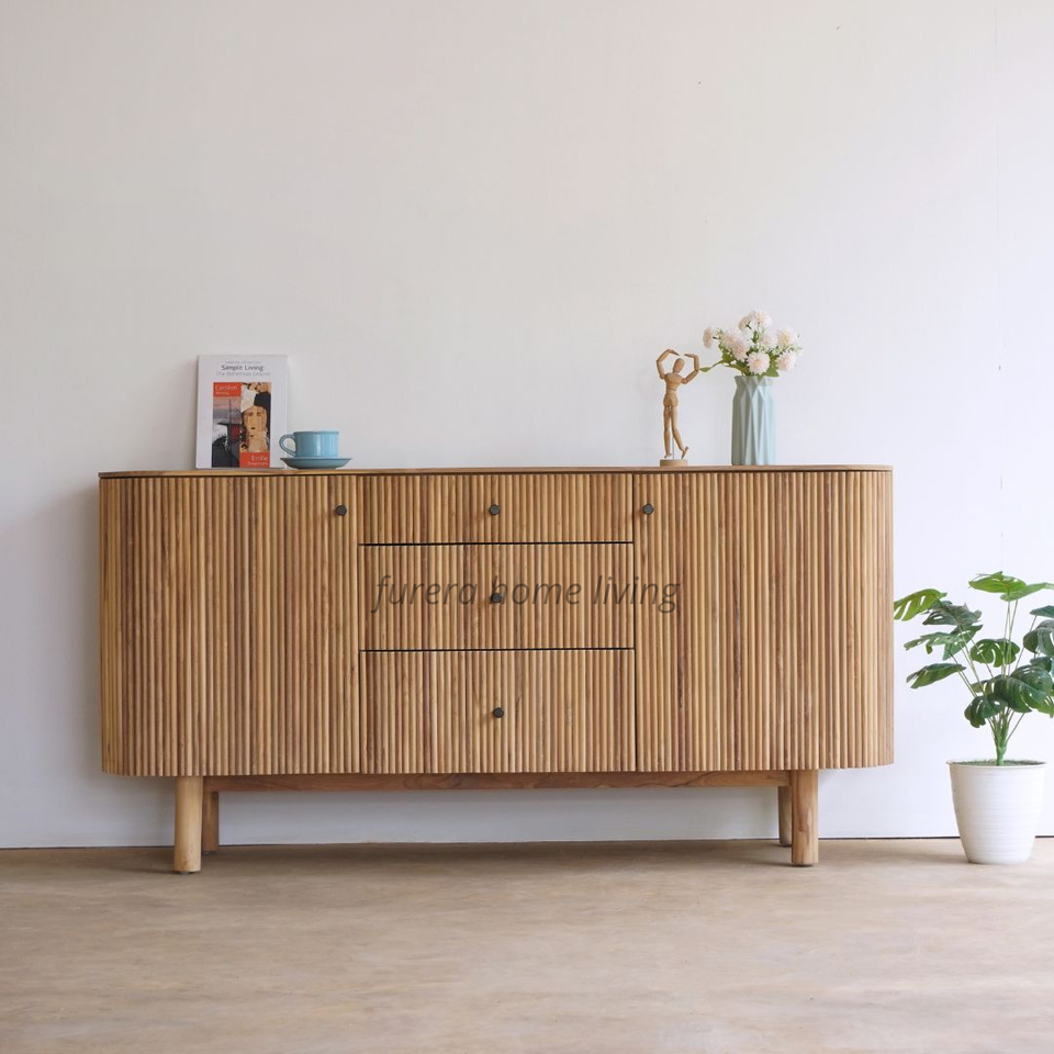 Modern Style Sideboard Cabinet Solid Teak Wood Frame Natural Finish for Home Kitchen Dining Furniture
