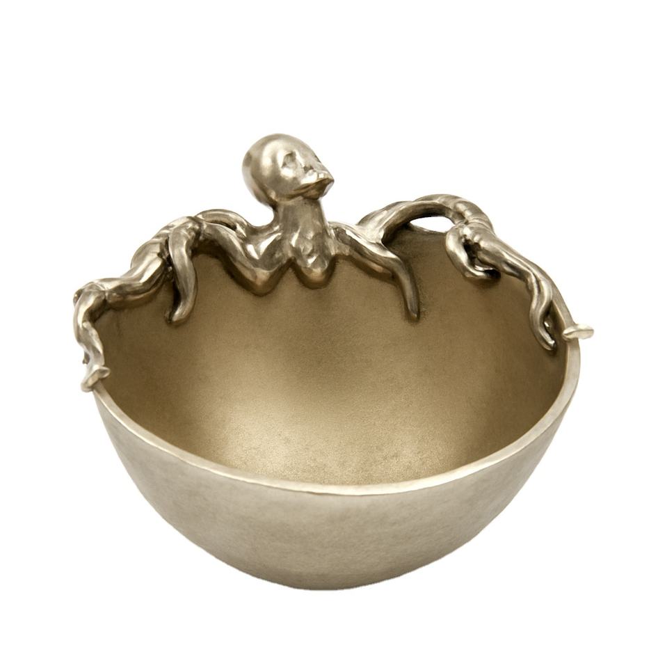 Modern Style Silver Decorative Bowl with Unique Octopus Design Contemporary Home Artistic Centerpiece Made of Aluminium