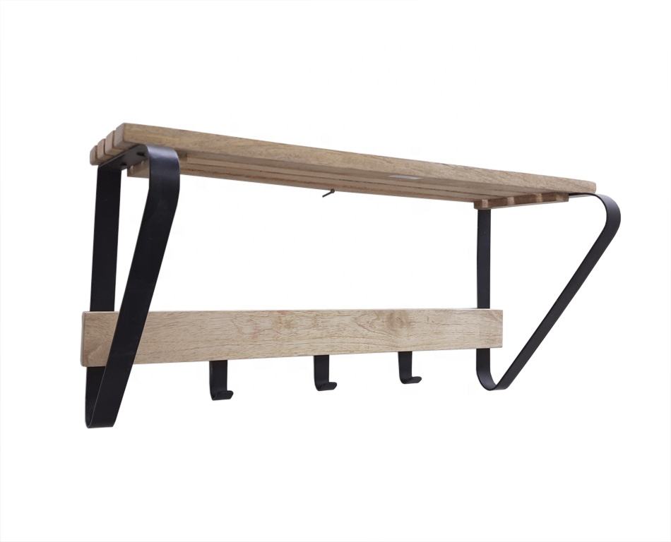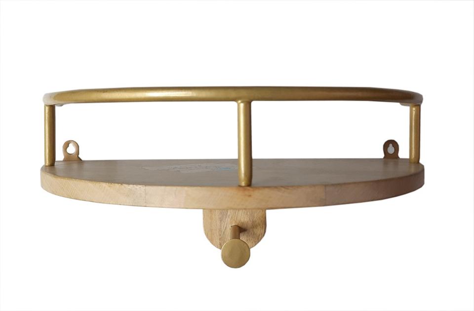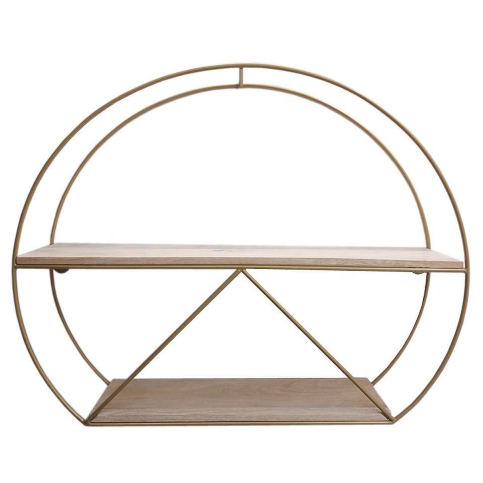 Modern Style Single Iron & Wood Shelve Gold Natural Colour Handmade Wall Decorative Rack for Bathroom Storage Double Tiers