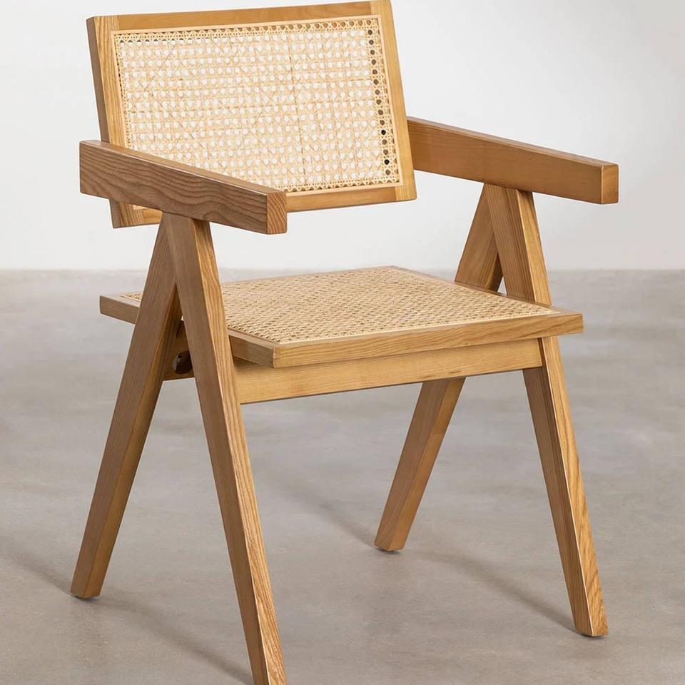 Modern Style Teak Wood Dining Table with 4 Chairs Outdoor Garden Furniture Rattan Synthetic Chair Design - Pollensa
