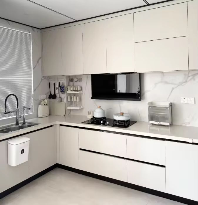 Modern Style White Minimalist PVC Kitchen Cabinets Custom Modern Furniture Set Oil Proof Easy Clean Decor Waterproof Kitchen
