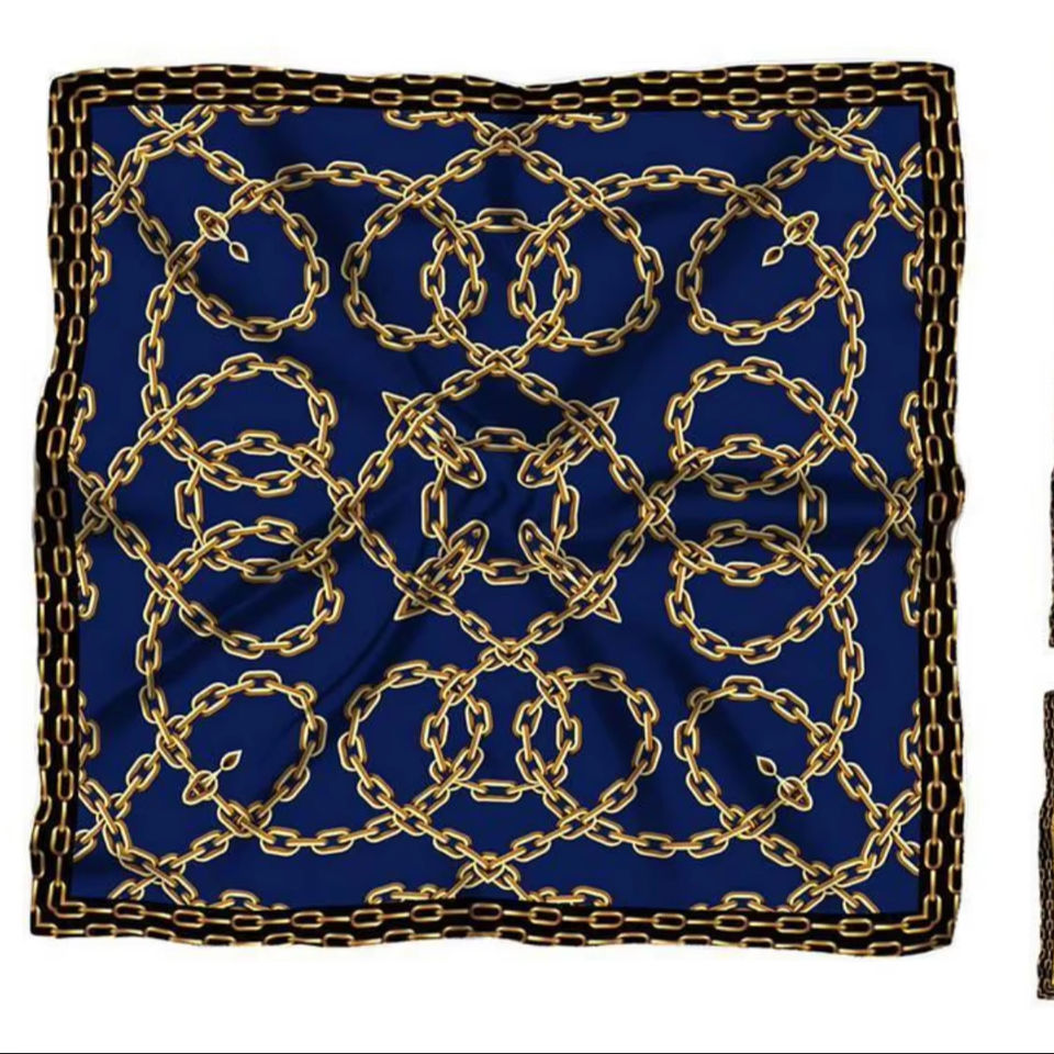 Modern Vintage 90x90cm Gold Chain Print Satin Scarf for Women Custom Geometric Square Head Neck Wrap Wholesale Digital Printed