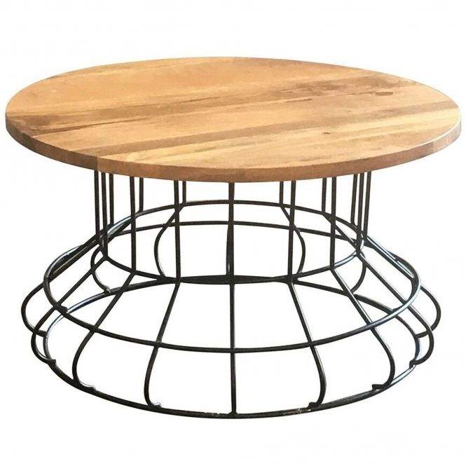 Modern Style Wood Top Metal Base Round Centre Table Black Powder Coated Coffee Table India For Home Office Indian Supplier