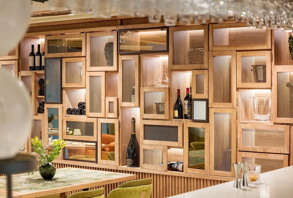 Modern Stylish Eco-Friendly Heavy Duty Food Display Counter LED Lights Customized Beautiful Display Rack for Restaurant Interior