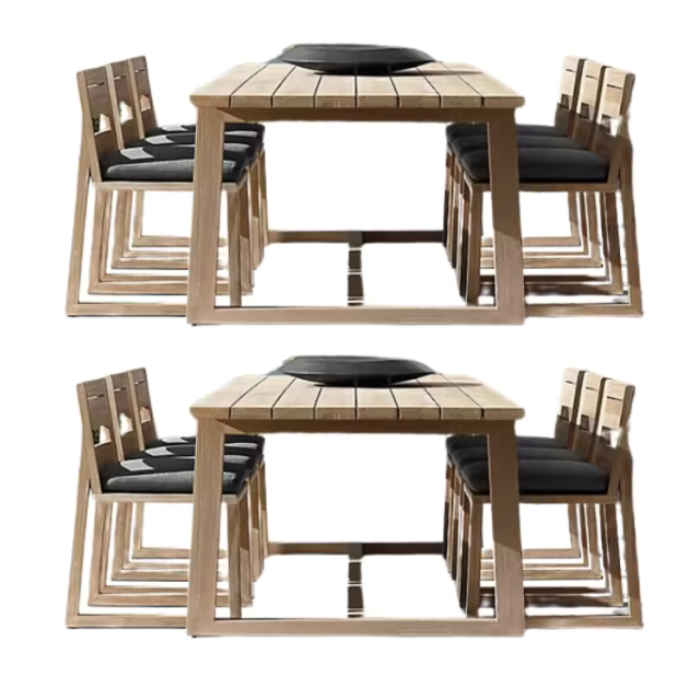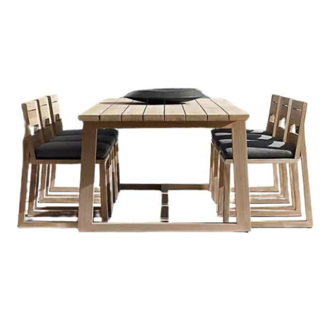 Modern Stylish Highest Quality Commercial Use Restaurant Dining Set Fabric Cushion Chairs Teak Solid Wood Dining Table