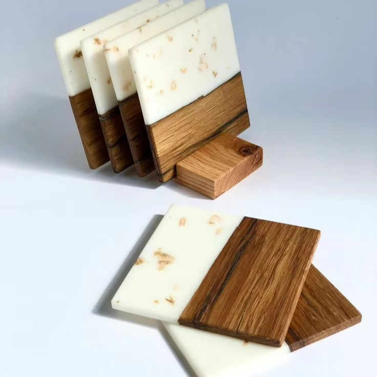Modern Stylish Marble Wood Coasters Waterproof Antique Cups Holder for Home Office Hotel for Kitchen Living Room House Warming