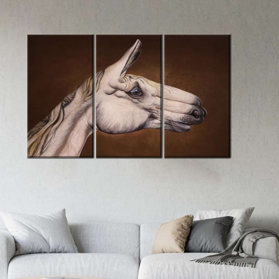 Modern Surreal Horse Print Canvas Artwork, Abstract Wall Decor,3P:Gallery Wrapped