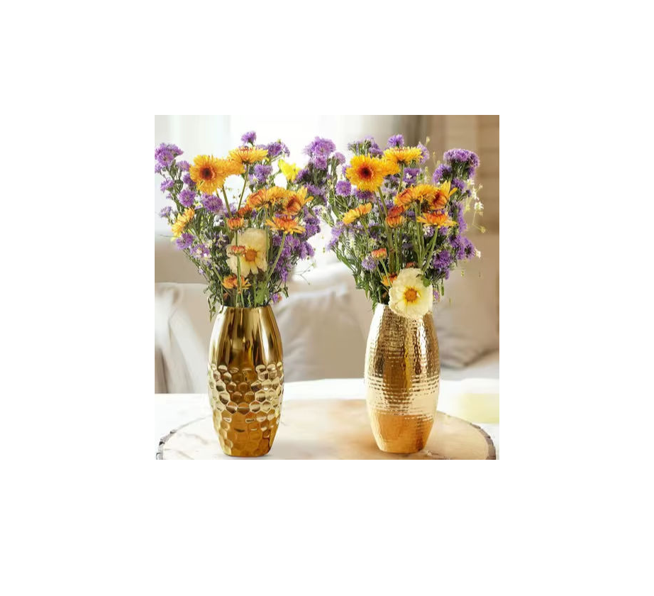 Modern Table Aluminium Flower Vase Rustic Brown Hammered Metal Tall Vase