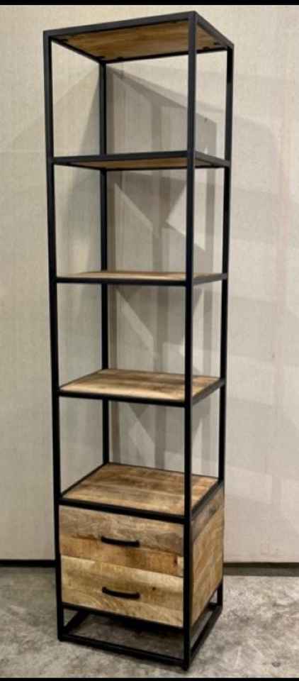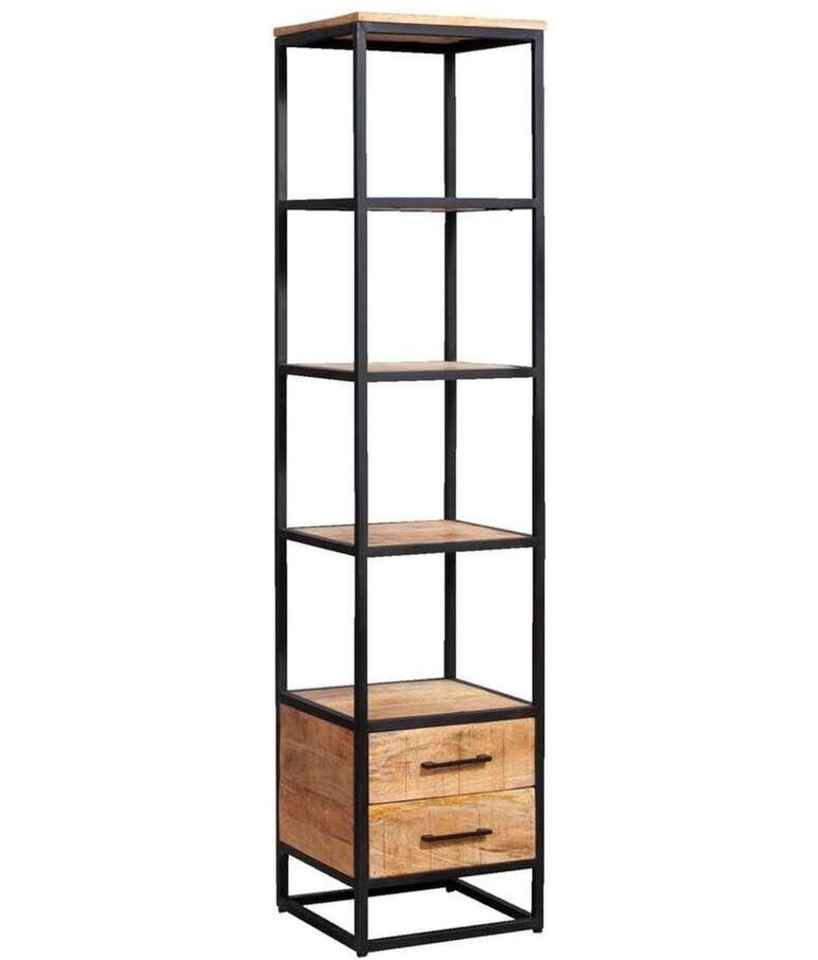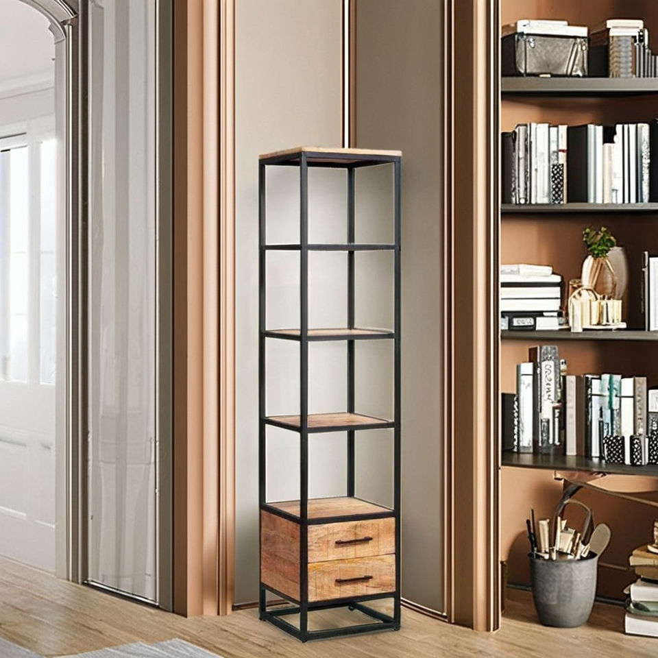 Modern Tall Industrial Shelf Unit Bottom Drawers Vertical Bookcase Open Shelves Space-Efficient Furniture Home Office Apartment