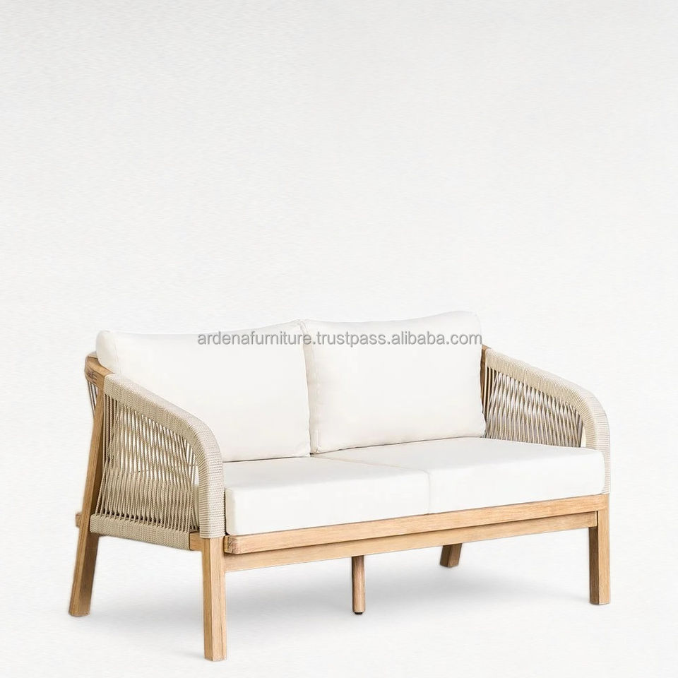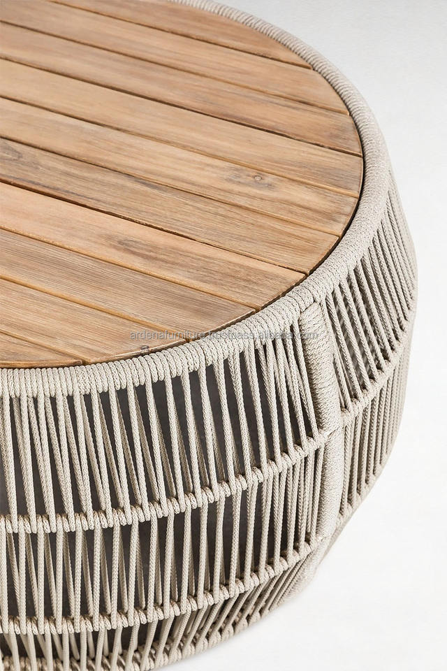 Modern Teak Outdoor Furniture Set Round Wooden Garden Table with Removable Comfortable Sofa Cushions Villa Park Courtyard Use