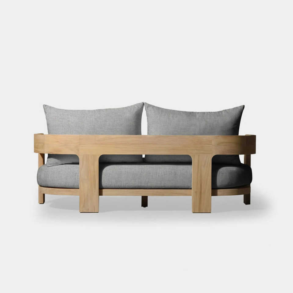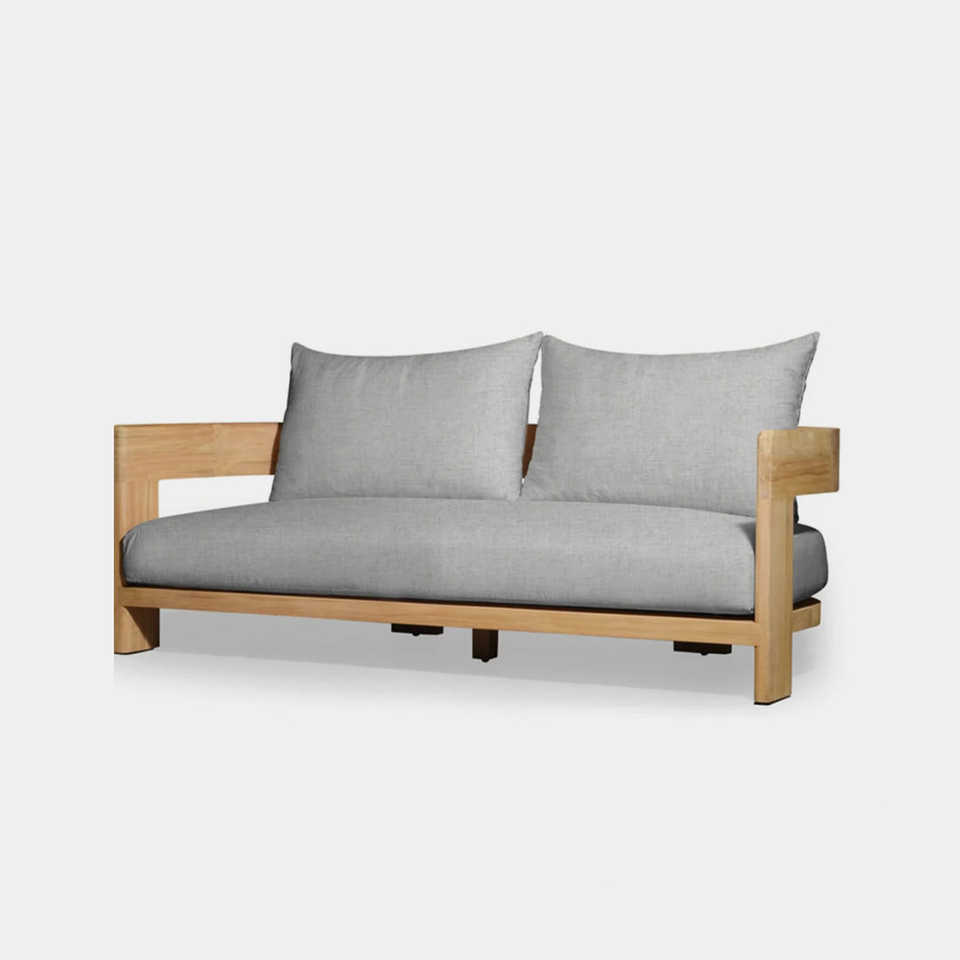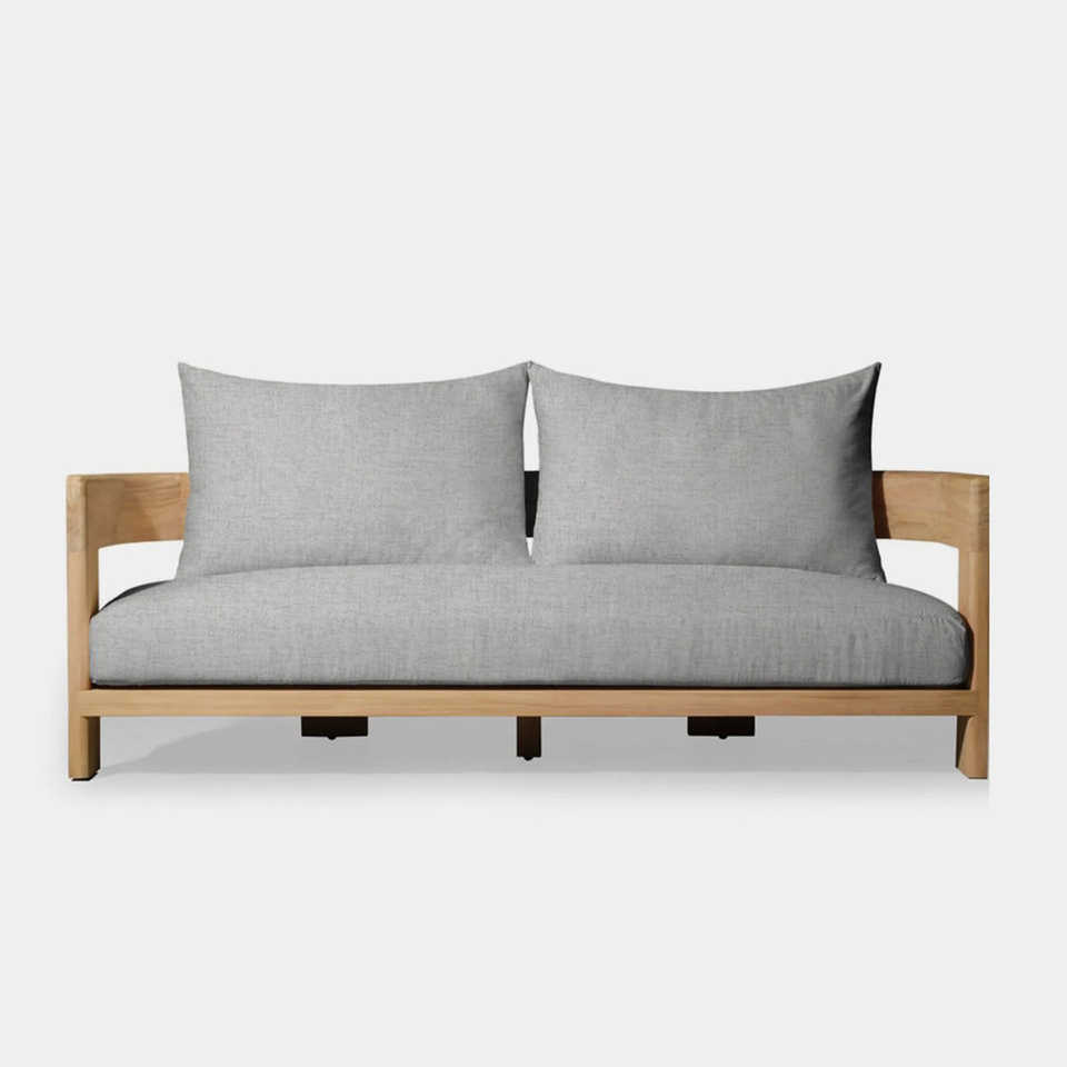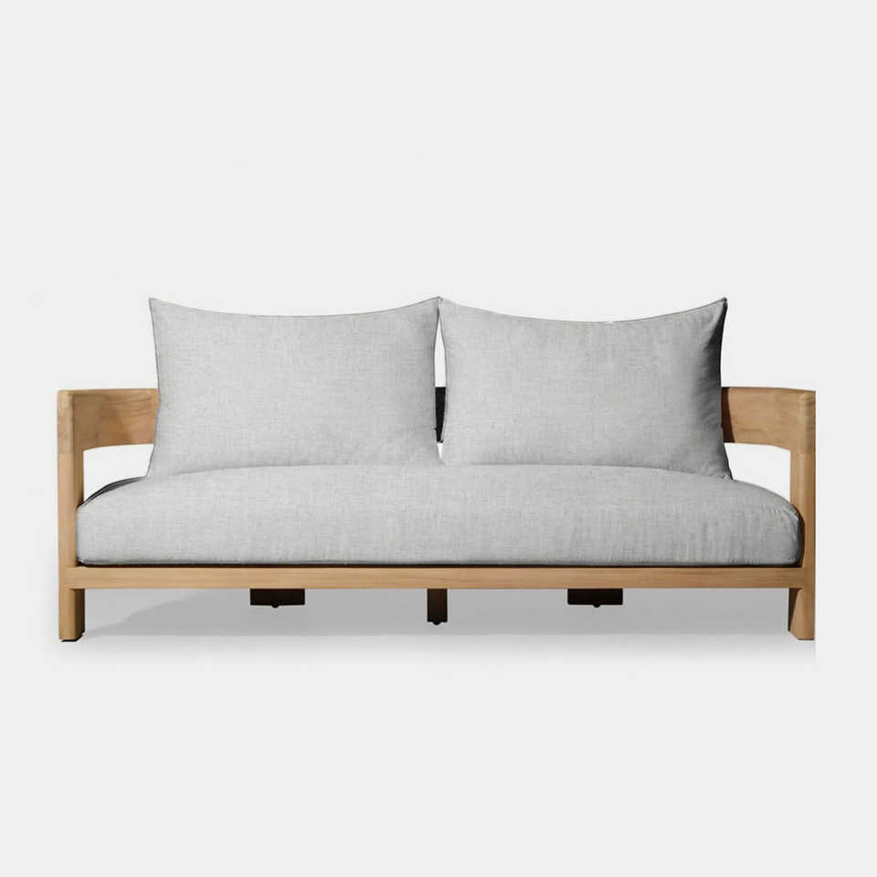 Modern Teak Outdoor Lounge Sofa Set with Deep Cushions and Elegant Design Perfect for Stylish Poolside Relaxation and Patio