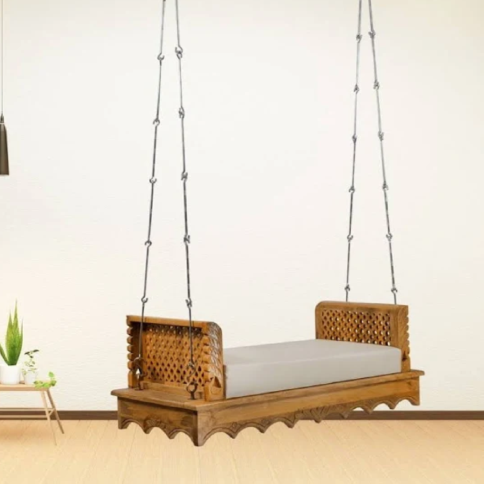 Modern Teak Wood Porch Swing With Stand, Natural Wooden Swing Jhoola for Indoor and Outdoor Spaces Available at Cheaper Prices