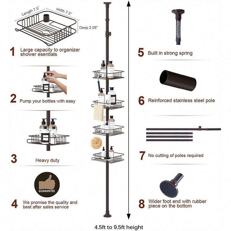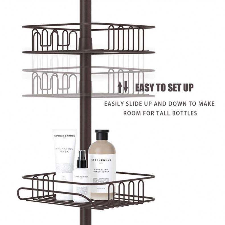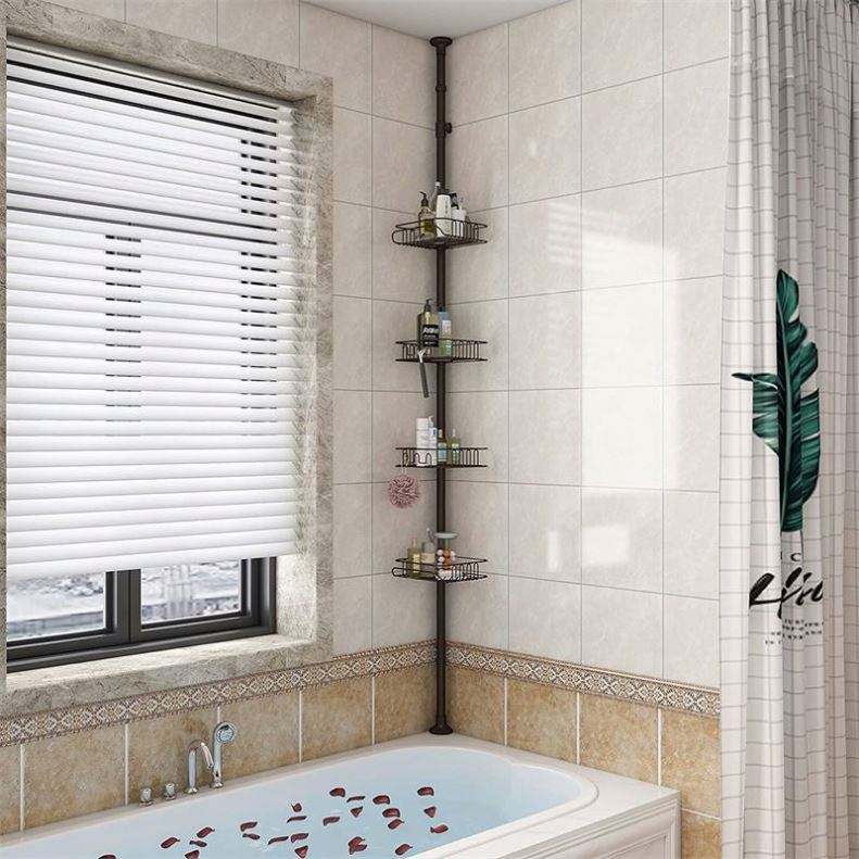 Modern Telescopic Metal Corner Shower Rack Four Tier Circular Height Adjustable Free Stand Extension Bathroom Shelf