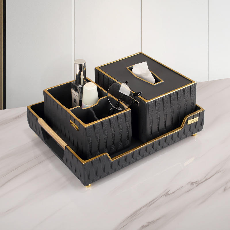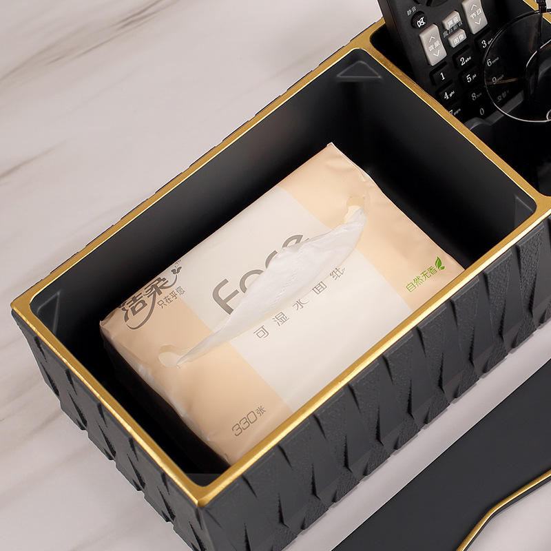 Modern Tissue Box With Remote Holder And Ashtray Resin Living Room Storage Organizer Black Gold Trim Multi Functional