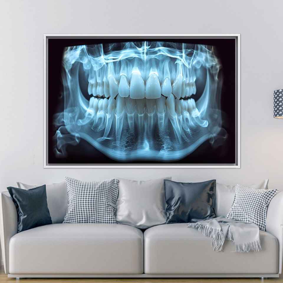 Modern Tooth Anatomy Printed Canvas Art for Dentist Office Decor,1P:White Framed