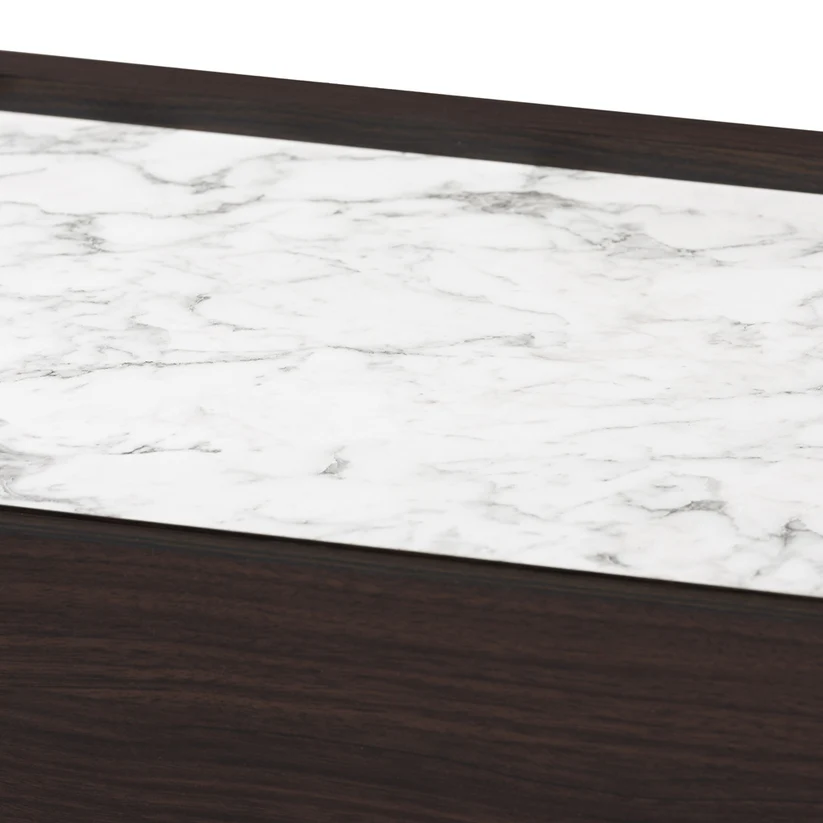 Modern Traditional Luxury Bedside Table Solid Teak Wood Faux Marble Top 2 Drawers Gold Accent for Bedroom Living Room Apartment