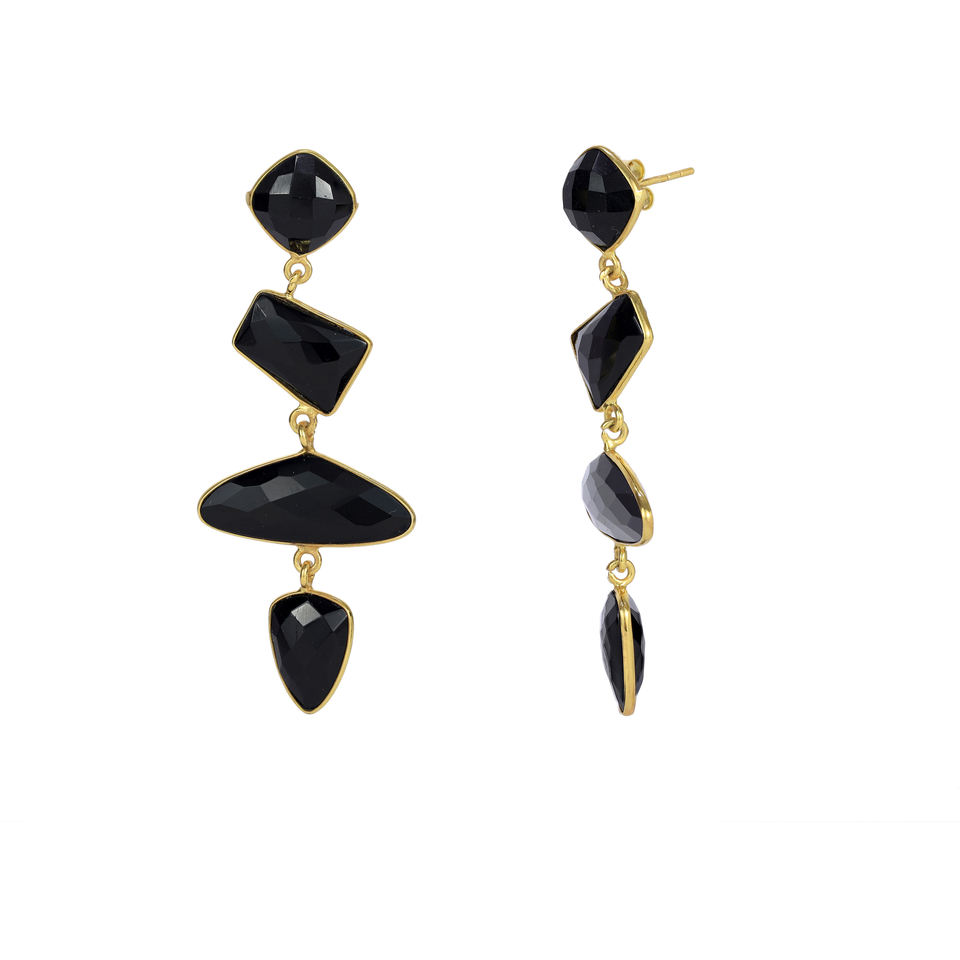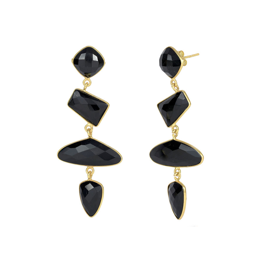 Modern Trendy Design Solid 925 Sterling Silver 18K Gold Plated Natural Black Onyx Multi Gemstone Bezel Setting Dangling Earrings