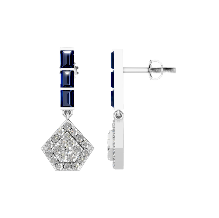Baguette Cut Sapphire and Diamond Square Drop Earrings