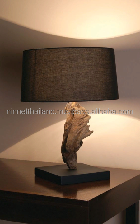 Modern Tripod Floor Lamp with Shelf Natural Wood Base and Fabric Drum Shade Folk Art Thai for Art & Collectible