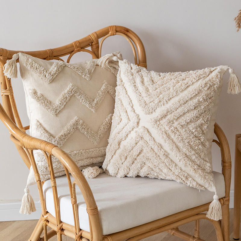 Modern Tufted Throw Pillow Cover Square Geometric Pattern Plush Cotton Polyester Decorative Cushion Case For Home Sofa Bedroom