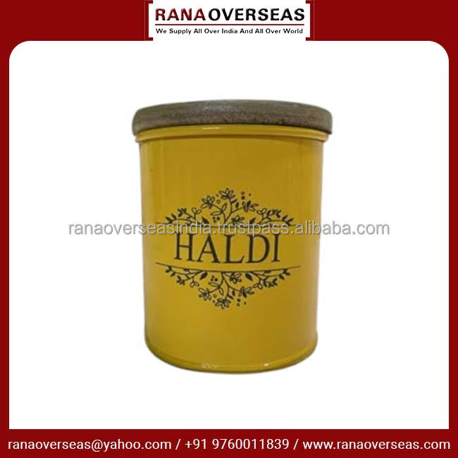 Modern Turmeric Metal Spice Jar Premium Iron and Wooden Combo for Stylish Kitchen Storage Available in Multiple Sizes