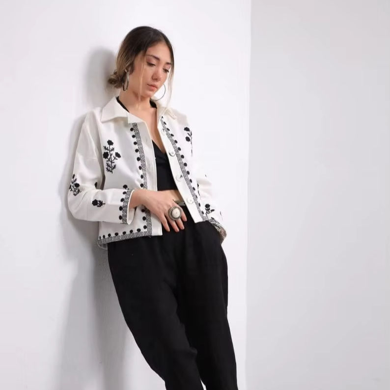 Modern Ukrainian Vyshyvanka Blouse in White for Women Embroidered Boho Shirt Ideal for Cultural or Casual Outfits