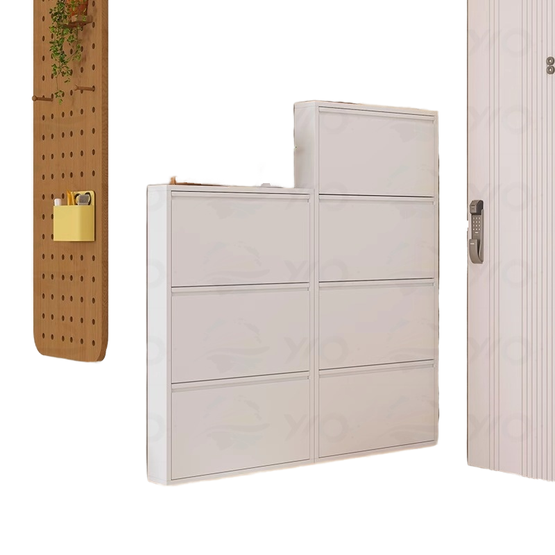 Modern Ultra-Thin Portable 4 Drawer Shoe Rack Easy Assembly Freestanding Metal Shoe Cabinet Space Saving Flip Home Furniture