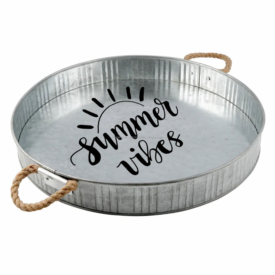 Modern Unique Design Home Decor Rustic Large Outdoor Round Decorative Serving Tray for Home Office Parties and Garden Decoration